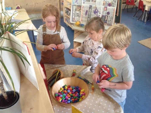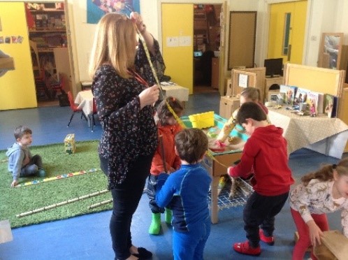 Children are continuing to enjoy investigating sizes through using different materials to measure. They are looking for different things around the playroom and outdoors to measure and compare using the language shortest, longest, tallest and smallest.